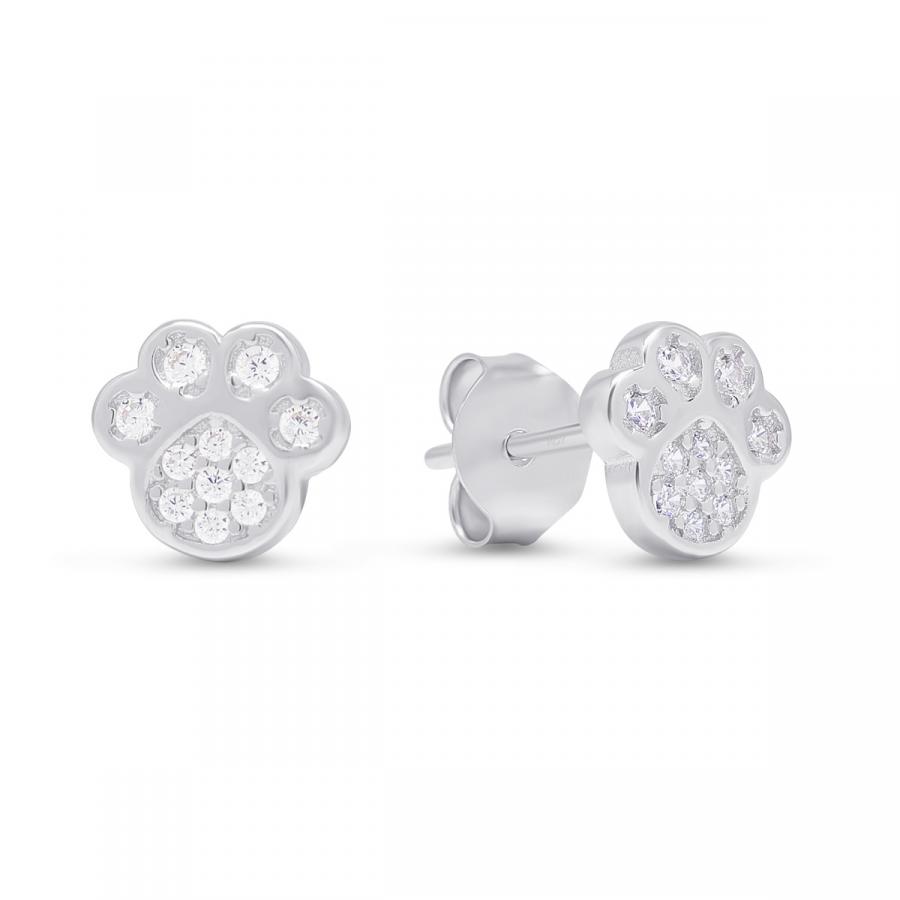 Hopeiset tassukorvakorut zirkoneilla nappikiinnityksellä.