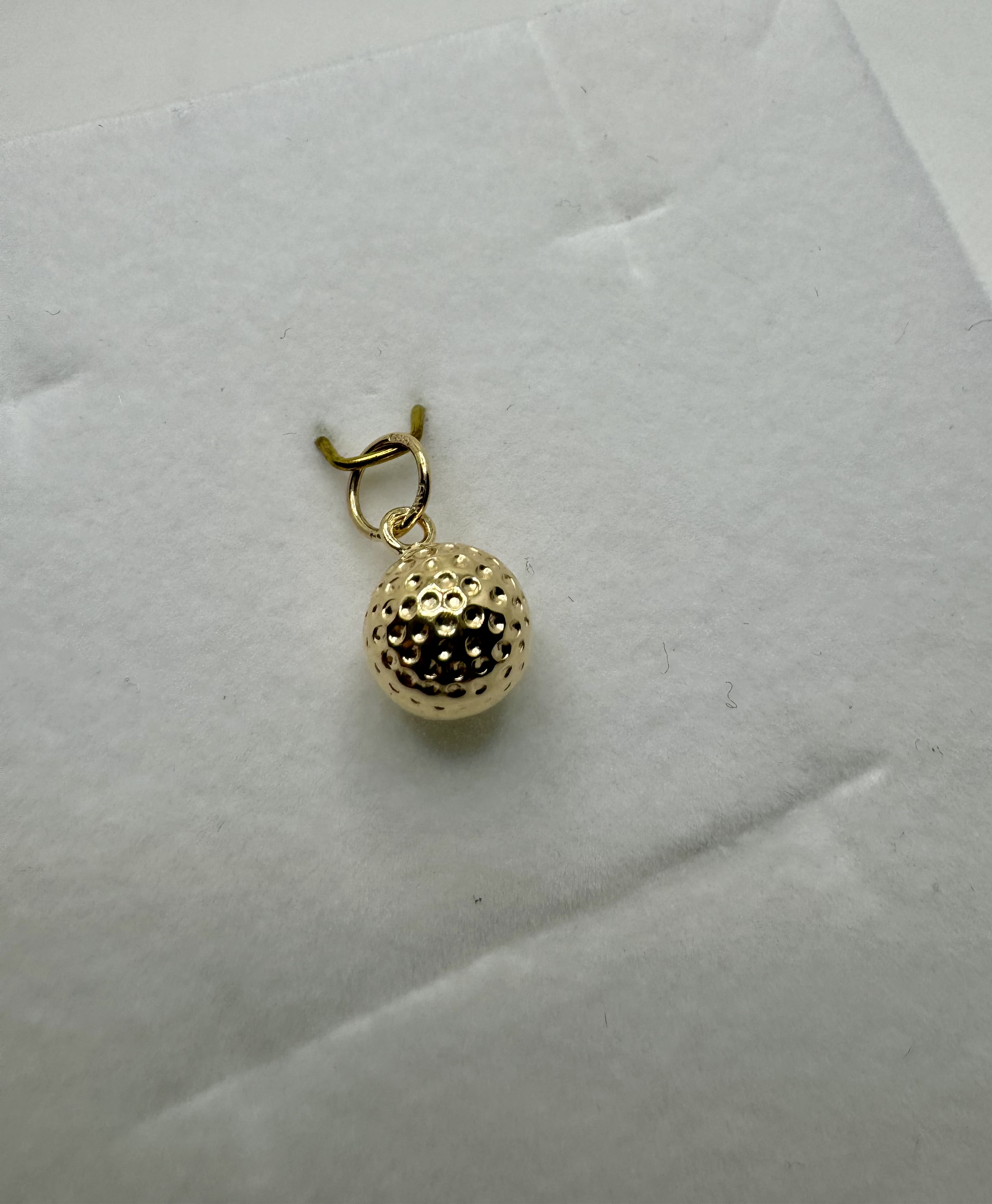 Saatavilla Graanin liikkeessä Kultainen golfpallo riipus. Golfpallo riipuksen halkaisija 8mm. 14 karaatin kultaa.