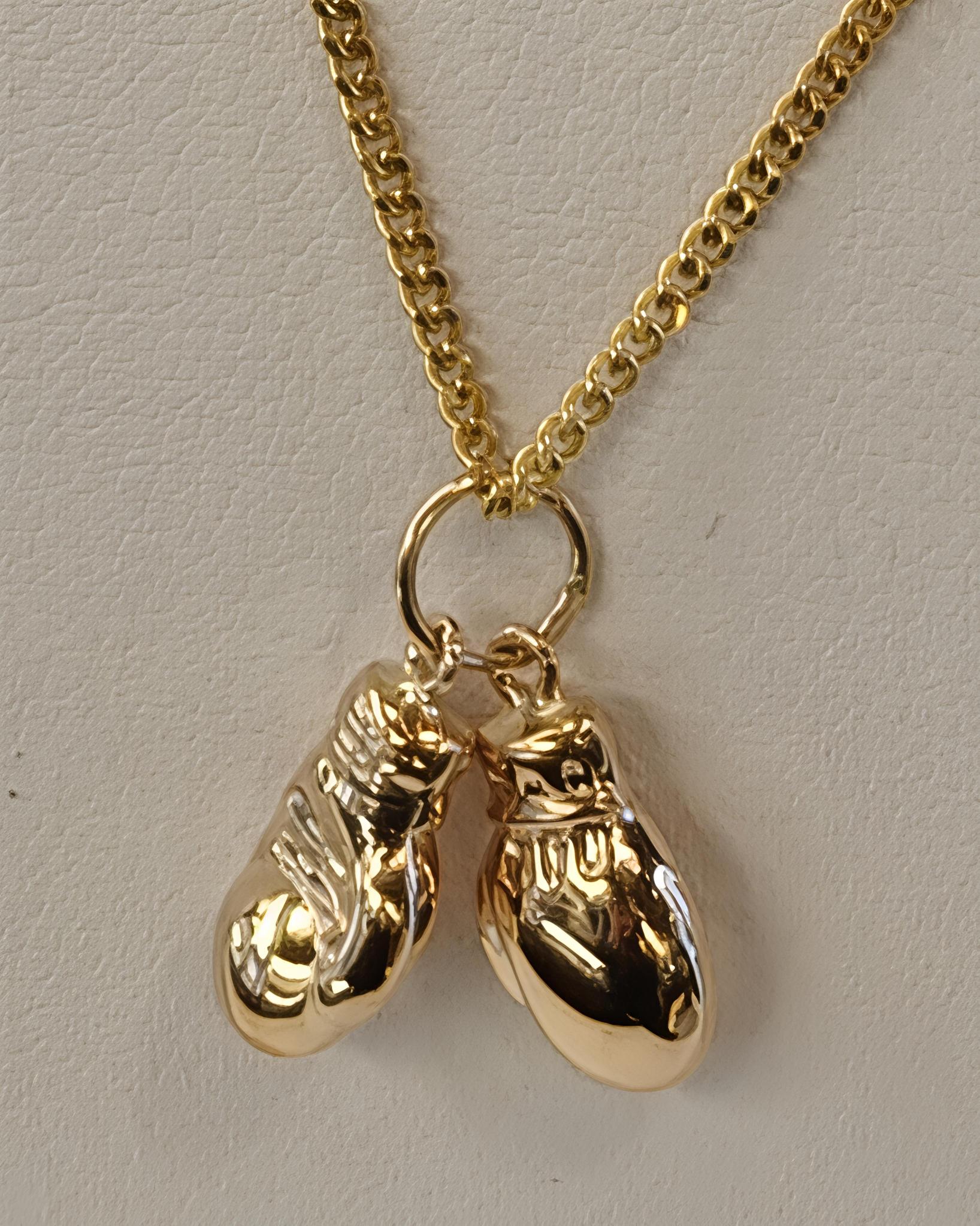 Keltakultainen maskottiriipus nyrkkeilyhanskat. Yhden hanskan koko 11x6mm. Ketju myydään erikseen.
