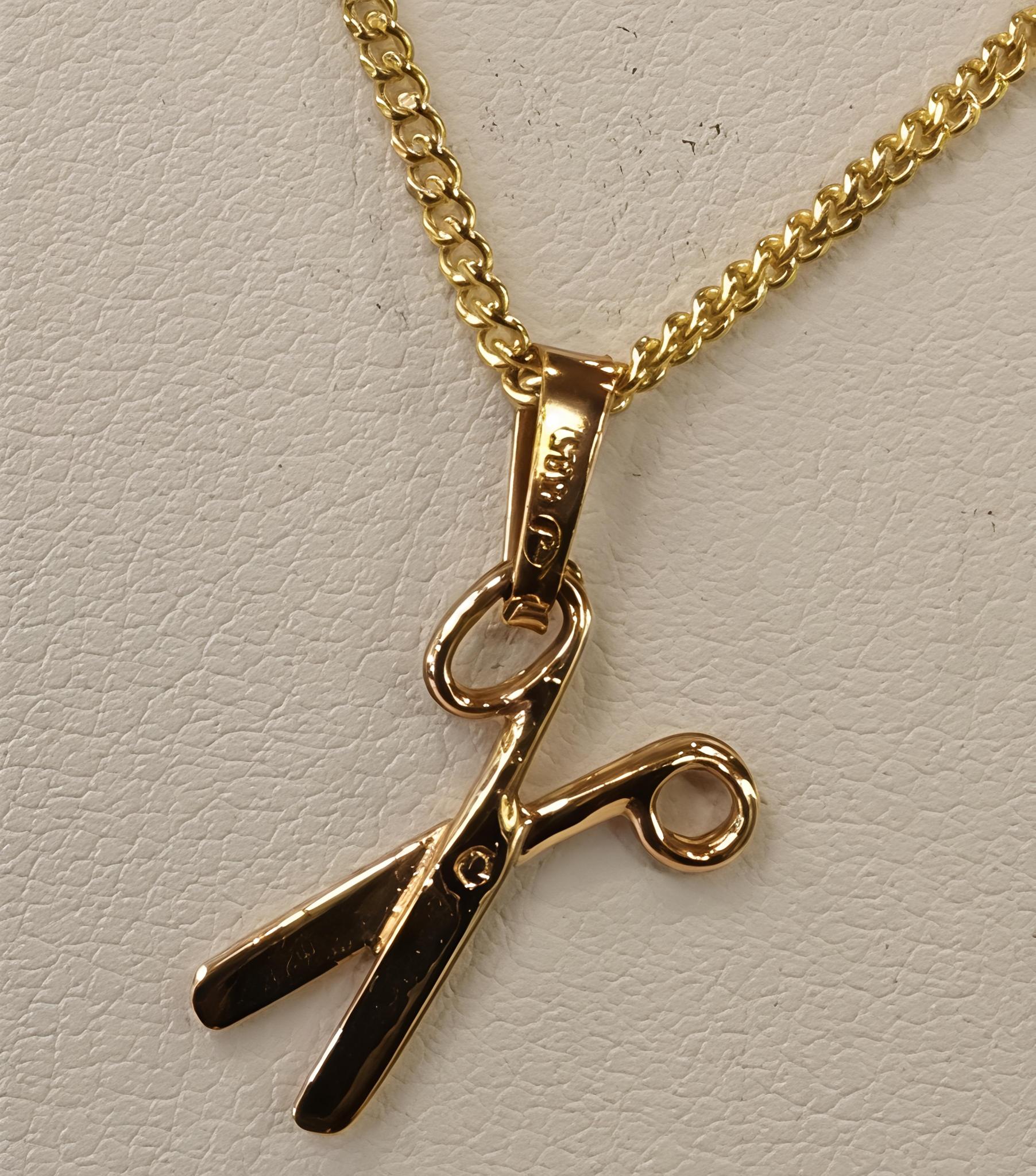 Keltakultainen maskottiriipus sakset, kampaajalle, parturille, ompelijalle. Koko 13x8,5mm, riipuslenkki 4,5mm.