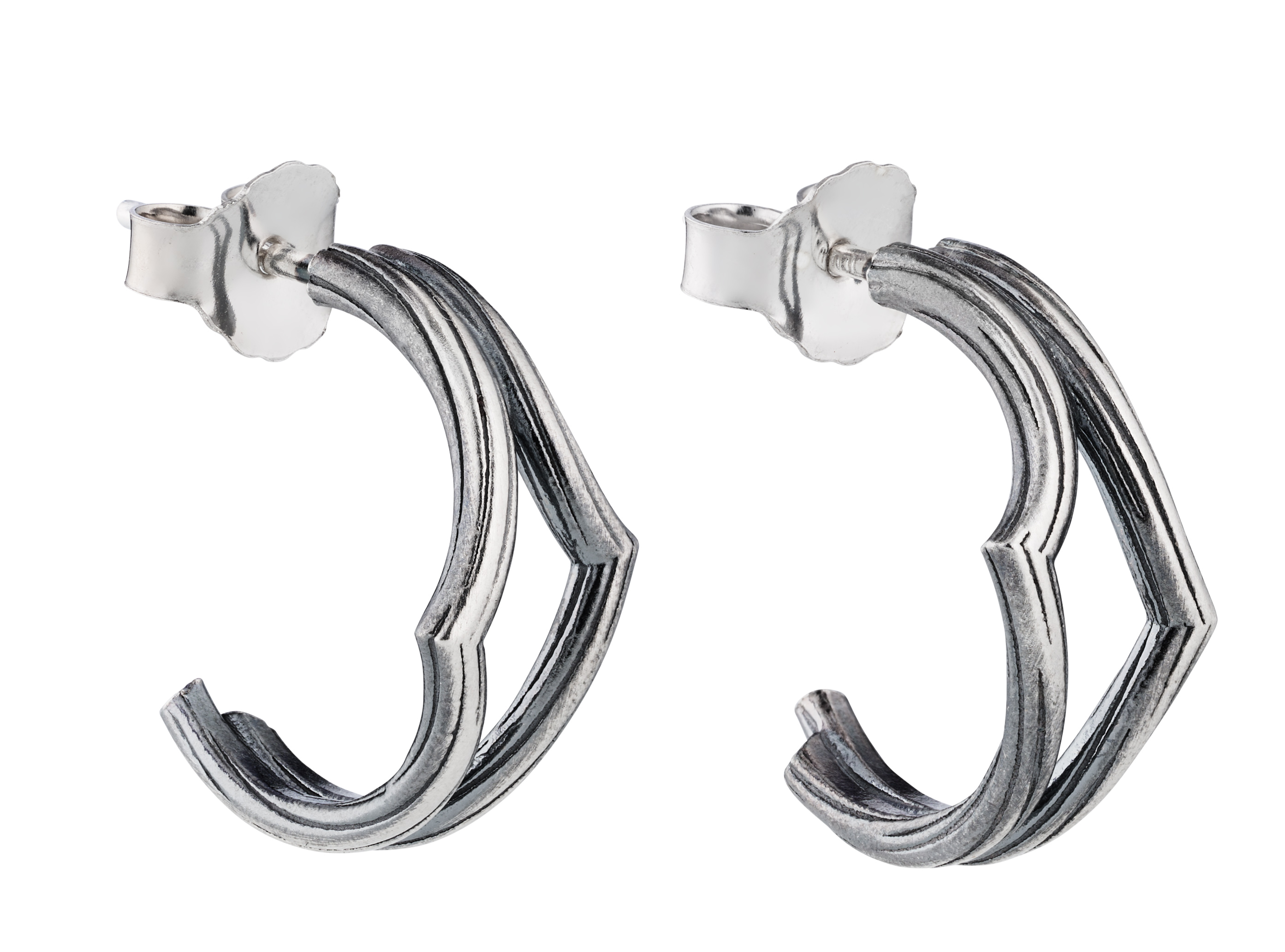 Vaellus korvarenkaassa toistuu sarjasta tuttu oksanhangan muoto, sen tummennettu pinta tuo kauniisti esiin kelopuun pintakuvion. Korun koko on 8x18mm.