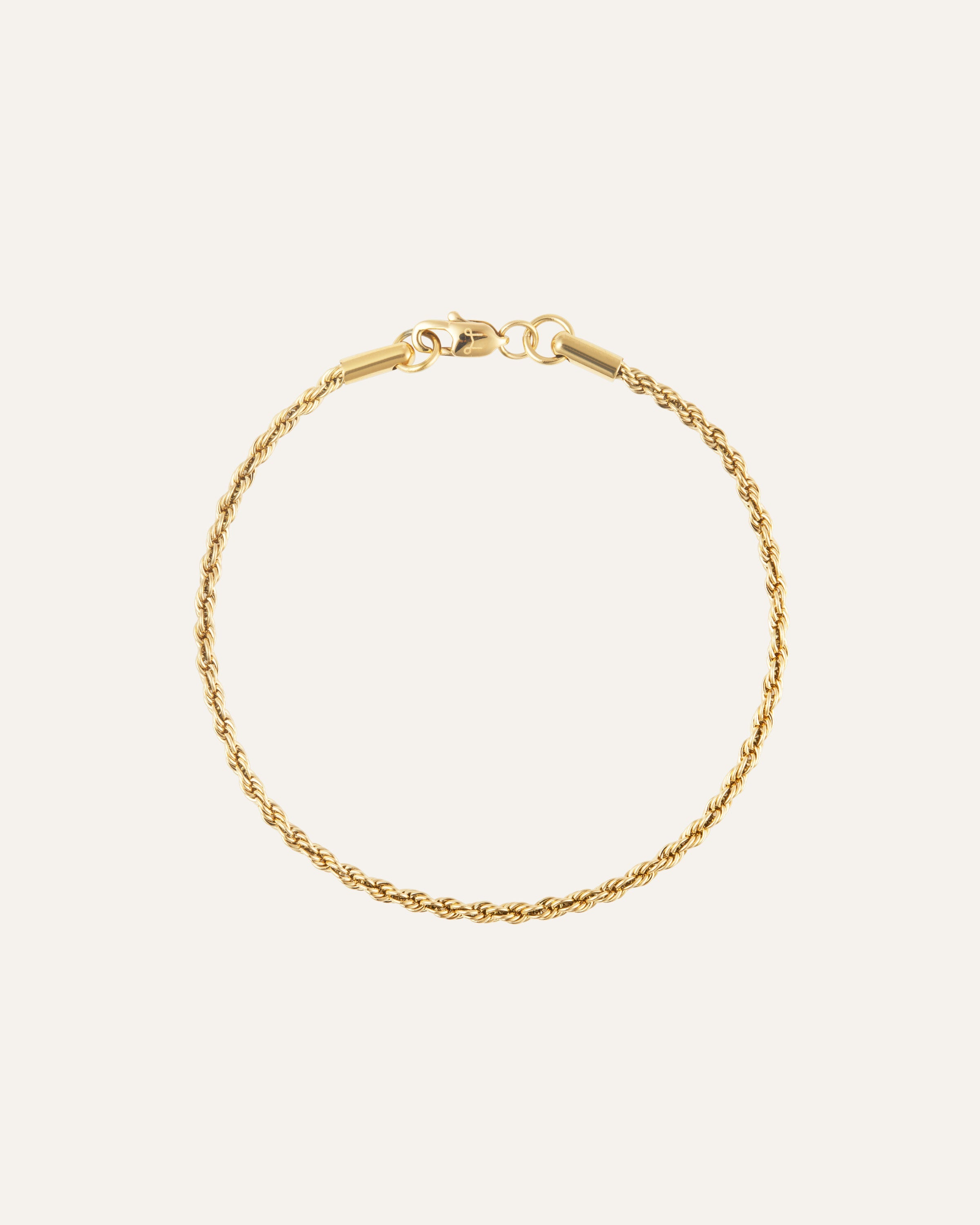 Minimalistinen ja klassinen – tämä ohut rannekoru kierretyllä ketjumallilla on elegantti valinta kaikkiin tilanteisiin. Valmistettu ruostumattomasta teräksestä 18K kultapinnoitteella ja PVD-käsittelyllä – kestävä ja vedenkestävä, säilyttää värinsä ja kiiltonsa ajan myötä. Jatkoketju on helppo irrottaa yksilöllisen istuvuuden saavuttamiseksi.