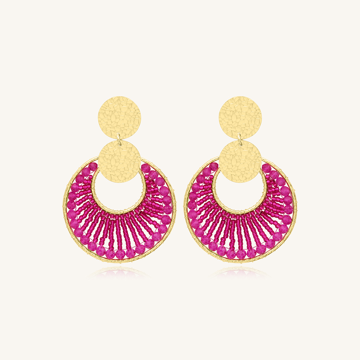 Käsityönä valmistetut kauniit fuchsian väriset Santibe mini Luna korvakorut, keveyt näyttävät korvakorut viimeistelevät tyylisi.